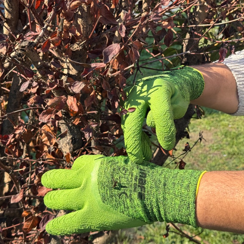 Eldivenin dış yüzeyi lateks malzeme ile kaplanmış olup,kaymaz bir yüzey sağlar ve kavrama kabiliyetini artırır. Pütürlü dokusu ile daha iyi bir tutuş imkanı sağlar.